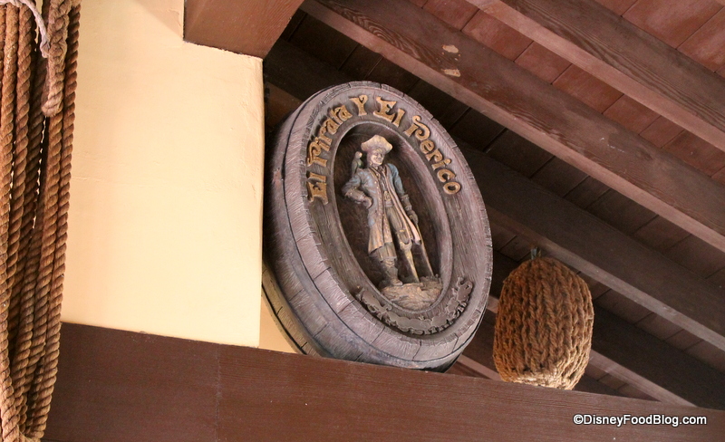 I’m grateful to the Cast Member who kindly pointed out something I may have otherwise missed: the retired sign for El Pirata Y El Perico (the previous name for this location) up in the rafters.