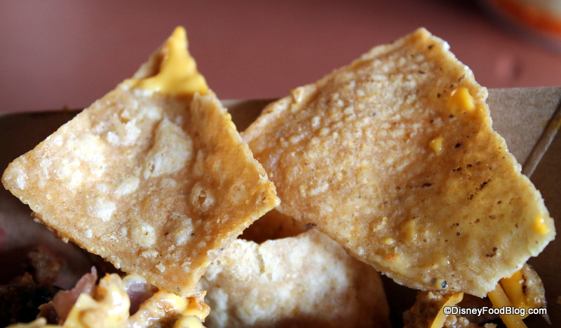I stole more than a few of my husband’s Nachos, so I can verify that they were plenty tasty! The ground beef is very finely chopped and well-seasoned. If you’re familiar with the Taco Salad at Pecos Bill’s, this is the same style of meat (Tortuga Tavern serves the Taco Salad as well).