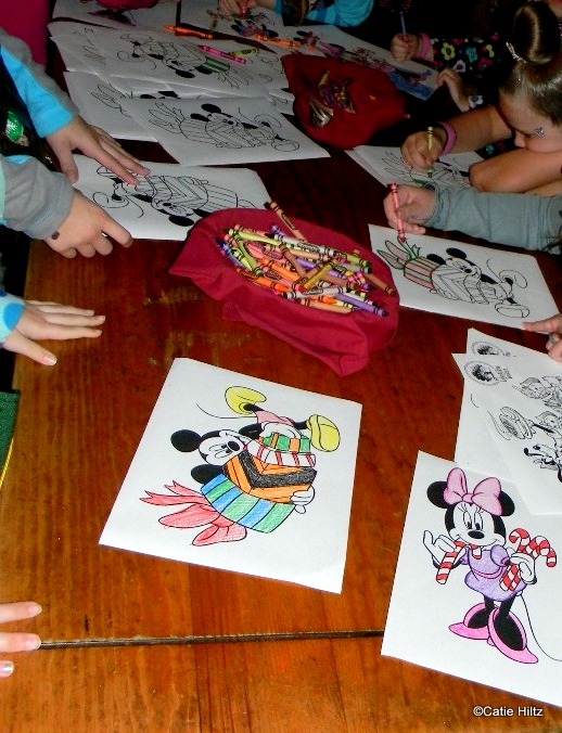 A coloring area was setup with cute Disney themed holiday coloring pages.