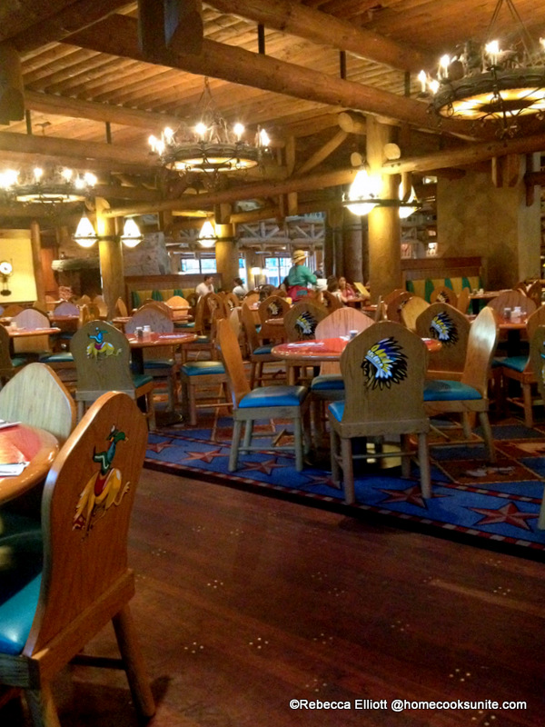 We like to eat breakfast at the Whispering Canyon Café when we stay at the Wilderness Lodge. It’s convenient, the portions are hearty, and there’s usually no wait for a table. (Even so, get the Advance Dining Reservation – just in case! You never know!)