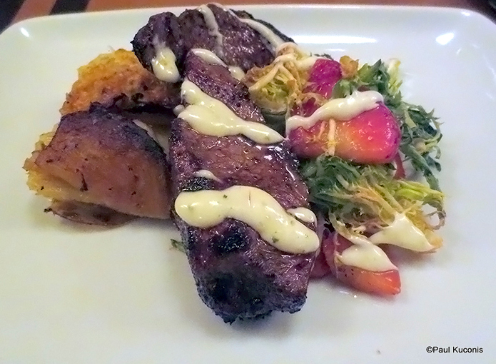 The citrus aioli with its tang added a nice complement to this cut of meat. The aioli also worked well with the frisee and strawberries — a nice mix of sweet, texture, and tang.