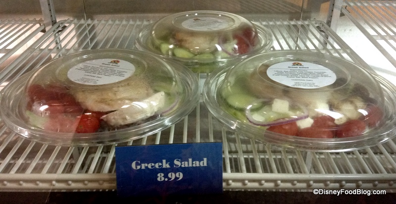 Refrigerated food items include cold fruits and veggie packages, as well as sandwiches and salads to make a fuller meal (below are just a few examples).
