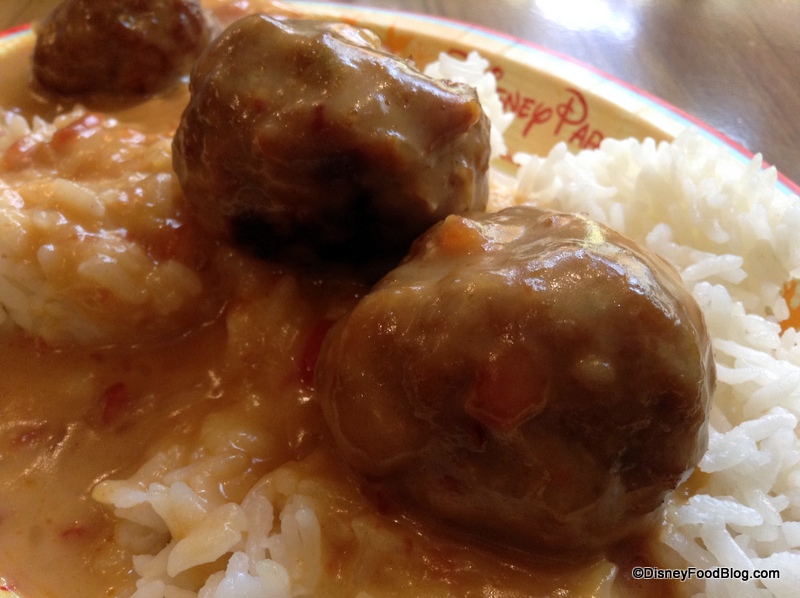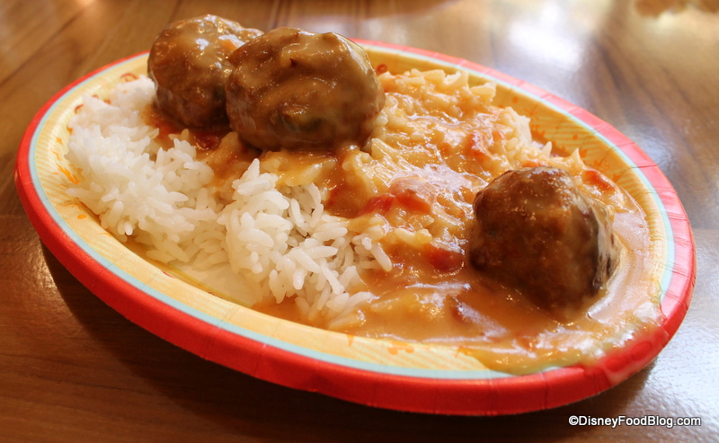 The meatballs sound enticing, but they need a salad or some other green vegetable to balance them out. Something light and crisp would be good. I often find myself wishing Disney entrees came with a small green salad or green vegetable on the side. I think there’s still too much of a meat/carb focus in the World’s restaurants.