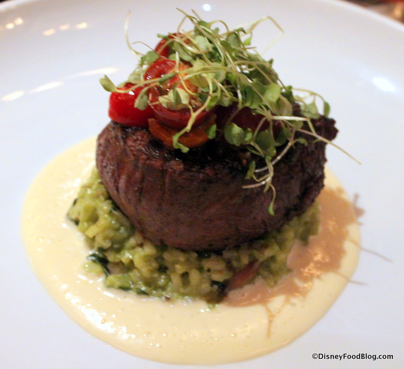 at Disney’s Wilderness Lodge is well-known for their Cedar-Plank Roasted Salmon and exotic selections, like Buffalo, Venison, and Game Sausage. But they also serve a lovely Grilled Center Cut Filet Mignon.