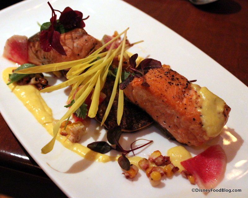 On the timing issue, I usually eat about 20+ table-service meals at Disney World on my visits. It doesn’t make sense with a blog calendar like ours to publish 20+ long-form articles with dozens of photos twice a day for 10 days after my return — there’s just too much other news to report, snacks to share, etc. So we space out our reviews over a few weeks. This still gives a good representation of the restaurants being reviewed, and most of the menu items (usually all of them when we are visiting a non-signature restaurant) we review are still there at the time we publish the review.