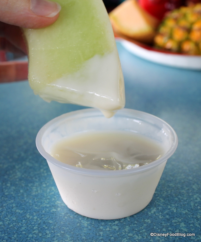 We’re spotlighting something that can help… with half of that goal, anyway ;)! We’re visiting Flame Tree Barbecue in Disney’s Animal Kingdom for the Fruit Plate with Honey Yogurt.