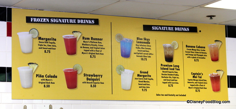 We decided to sample the Strawberry Daiquiri, Captain’s Mai Tai, and Blue Skyy Lemonade.