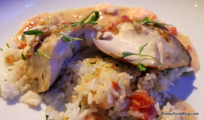 You may recall that we recently sampled the octopus dish at Le Cellier, and since it’s becoming more of an option at Disney World restaurants as of late, we figured we should give the Charbroiled Octopus a go here, too. At Coral Reef, it’s served with Mediterranean Potato Salad and Grilled Lemon.