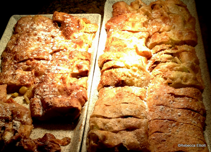 Just when we thought we couldn’t eat another bite, we sampled some desserts. There were many to choose from, including some traditional German delights like apple strudel and linzer squares (both delicious). There were also shot glasses filled with Bavarian cream that could be topped with strawberry compote. My daughter loved those!