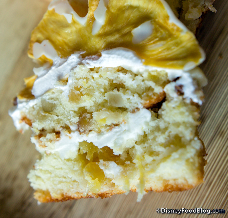 The pineapple you find in Hawaii is nothing like what you find in the grocery store back in the mainland. In Hawaii, it is much sweeter and fresh tasting. This was no exception; the pineapple lent a very sweet flavor to the cake. The whole thing was topped with icing that was like a light meringue with a light and airy texture.