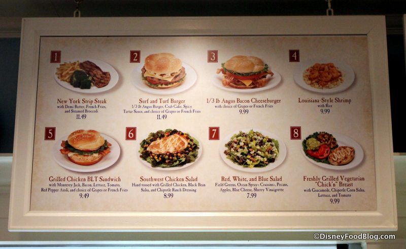 The American Adventure Pavilion’s Liberty Inn has added four new entrees: the Surf and Turf Burger (topped with a crab cake), Louisiana-style Shrimp served on rice, a Red, White, and Blue Salad (greens, Craisins, apples, pecans and blue cheese with a Sherry vinaigrette), and Maryland Crab Cakes served with Old Bay Fries (see our review here!).