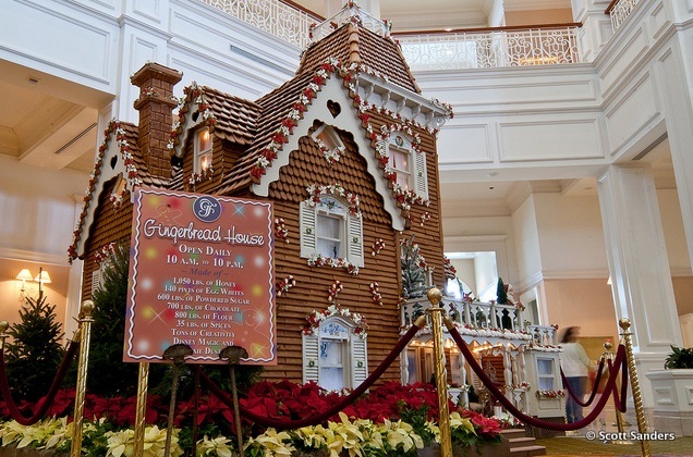 It just wouldn’t be Christmas at Walt Disney World without a trip to see the huge Gingerbread House at the Grand Floridian Resort and Spa. I love this shot, which shows you the scale of the house and captures some of the beautiful lobby interior of the hotel as well! (Keep an eye on the chimney — you may just see smoke rising from the house when you’re there!)