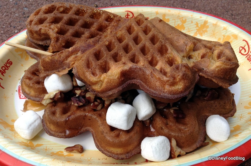 Last year, there was both a Savory and a Sweet Waffle: the Savory Waffle featured turkey, cranberry, and gravy in a waffle made of stuffing batter, while the Sweet Waffle featured the star ingredients of sweet potato casserole on a sweet potato waffle.