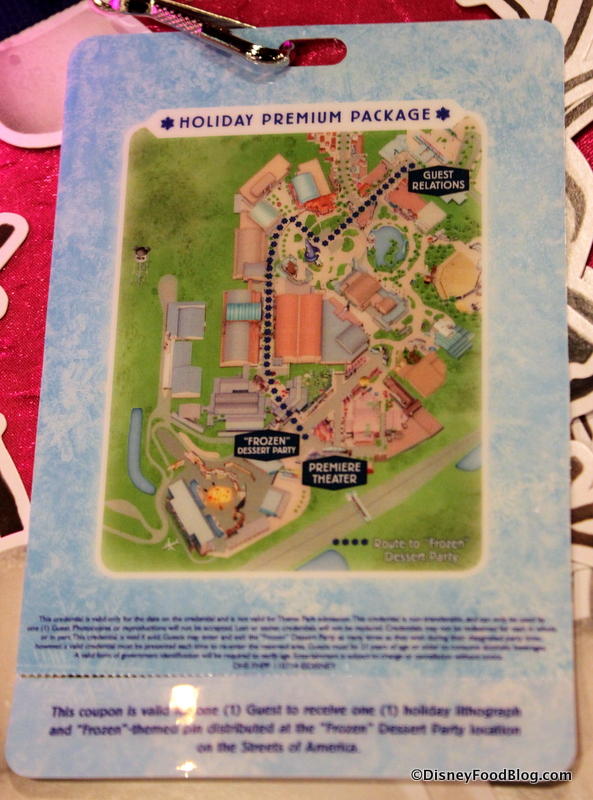 If you’ve purchased tickets for the Frozen Holiday Premium Package, you’ll want to head to Guest Services first, where you’ll pick up your credential. Hold onto this. It gets you into the different experiences included in your package.