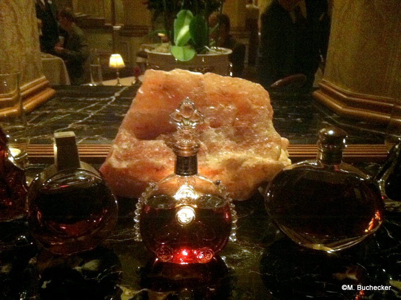 As you enter the restaurant there is a table with several bottles of expensive liqueurs and a huge pink “rock” of Himalayan sea salt.