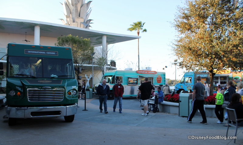 While original plans for an elevated walkway seem to have been scaled back for the present, it’s still nice to know that you can predict where at least one of the four Disney Food Trucks will be at any given time. 🙂