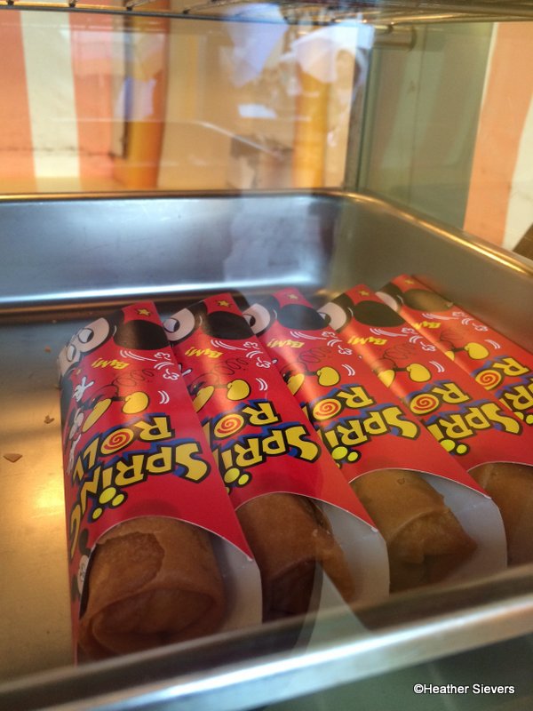 Located in Tokyo Disneyland’s Toon Town is this adorable little food cart that serves two types of Spring Rolls.