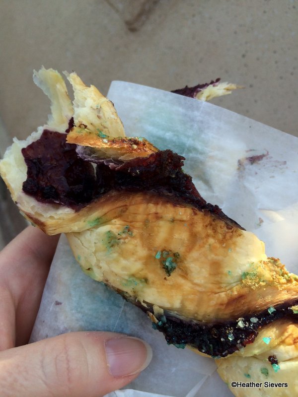 It’s hard to see in the photo, but the edible glitter is in the blueberry filling. This treat is pretty & delicious!