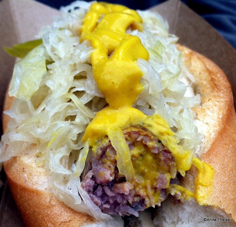 We moved on from China to Germany for a stop at Sommerfest. To be honest, I had my heart set on wrapping my lips around a Nudel Gratin for days, but I was starting to get full and knew that such a dish would be both rich and heavy. So, I passed on the Nudel Gratin (which I now regret — I really should have persevered) while my husband ordered a bratwurst. He loves a brat, and this one did not disappoint.