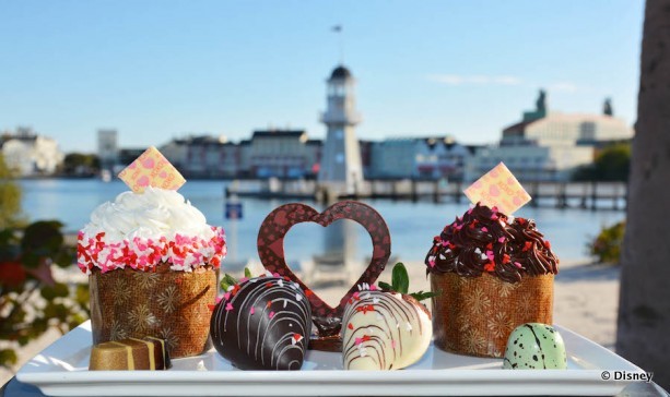 If you like to have your cupcakes and eat them too (plus you’d like a couple other things), then head to the Beach Club Marketplace for the Sweetheart Dessert. It includes Cupcakes, Chocolate Covered Strawberries, and Chocolate Truffles. Best of all — there’s two of everything, so no sharing required. 🙂