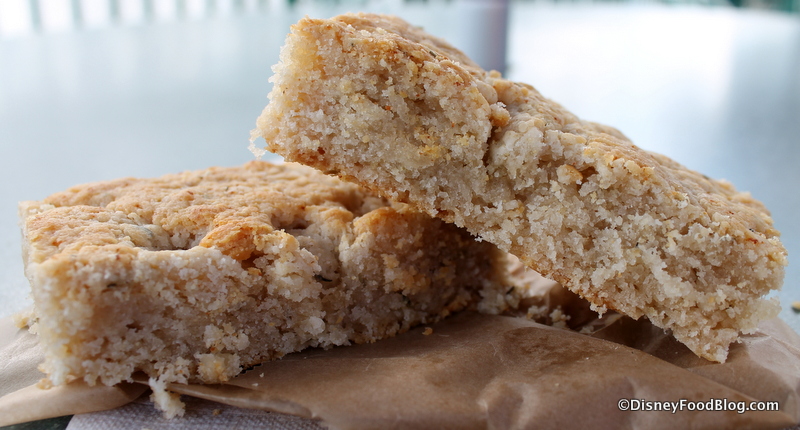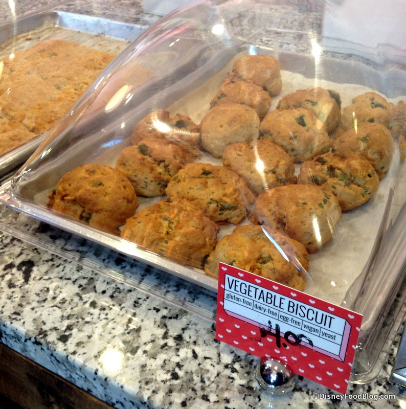 Lastly, a couple of savory options were displayed on the end: Vegetable Biscuits and Focaccia Bread.