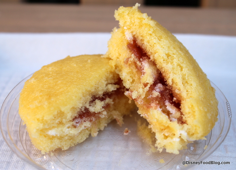 Unfortunately, I can’t claim to be familiar with a traditional English Victoria Sponge Cake. But I can tell you that the version you’ll receive at Epcot comes, understandably, in a “To Go” package, custom made for the search for seats at this popular stop.