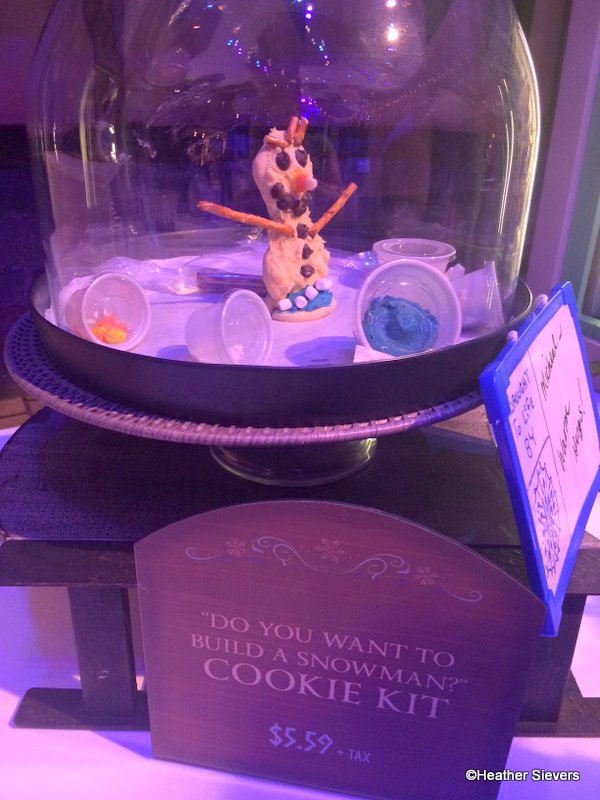 Looking for a little hands on activity? Grab one of the tables at Olaf’s Snow Fest and check out the “Do you want to build a snowman?” Cookie Kit. For $5.59 you get everything you need to build and eat your own snowman cookie. Cookie decorating supplies include frosting, chocolate chips, mini marshmallows, candy corn and pretzel sticks.