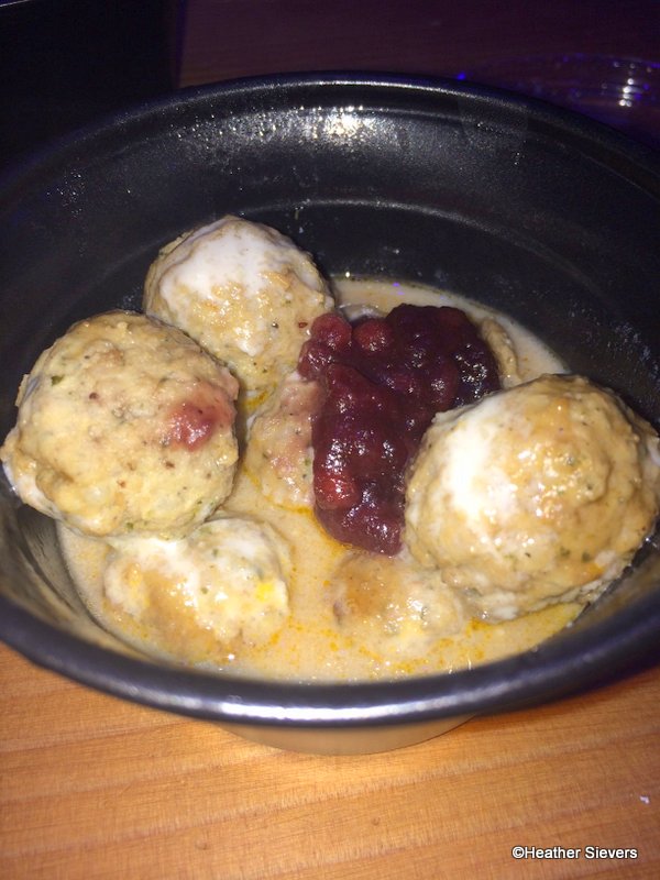 I’m seriously wondering if they are purchased straight from Ikea; very much a cafeteria type dish. The description reads “Creamy sauce melted over Scandinavian meatballs served with a lingonberry drizzle.” I thought they were just ok, a little too bland. I’d choose the corndogs over them any day.