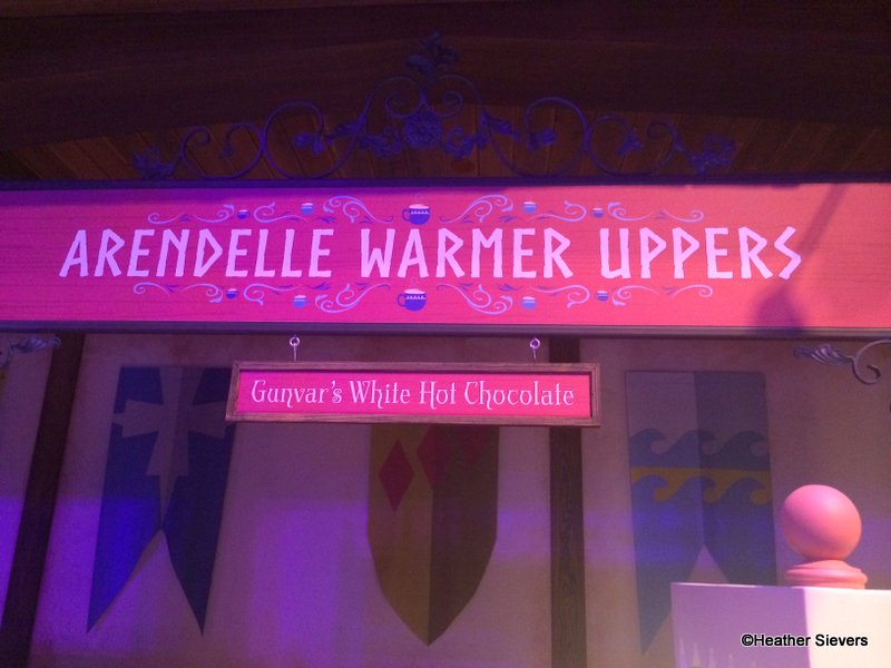 Next to the refrigerated case you’ll find the sign for Arendelle Warmer Uppers.
