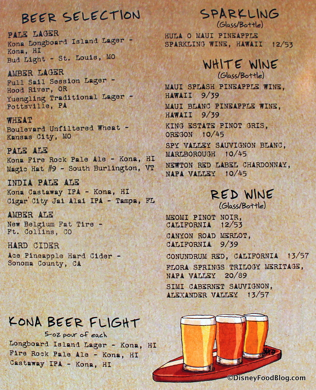 The menu at the Tiki Terrace matches the Grotto’s menu with one incredibly cool exception.