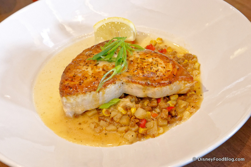 We dug right into our entrees. We began with the Swordfish, which is served on a bed of Sweet Corn, Fennel, Andouille and Potato Hash, and Creole Butter.