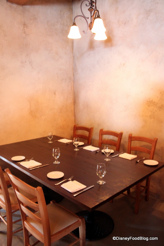 You will find that Tutto Gusto can reach capacity rather easily — hence those Cast Members stationed at the doors. There isn’t a ton of seating here, but what you do find is rustic, cozy, and fairly comfortable. It is a little “close”, however, so if you prize privacy or personal space, you may want to look at the couch options.