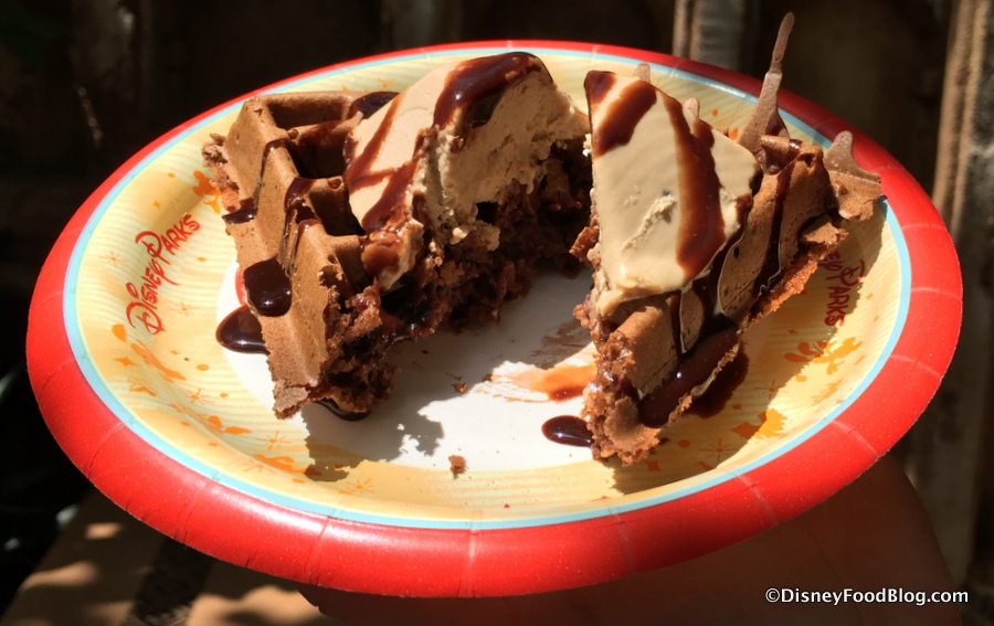 The cookie was said to be delicious with ample chocolate chips (if I may quote, “This cookie is legit” 🙂 ), even though it was harder than expected due to being served cold. But, hey, anything to help the ice cream keep its form on a hot Animal Kingdom day! Or at least try…