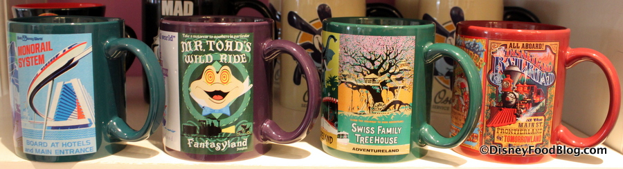 You’ll notice the purple mug is entirely dedicated to Fantasyland (including Mr. Toad’s Wild Ride, which is