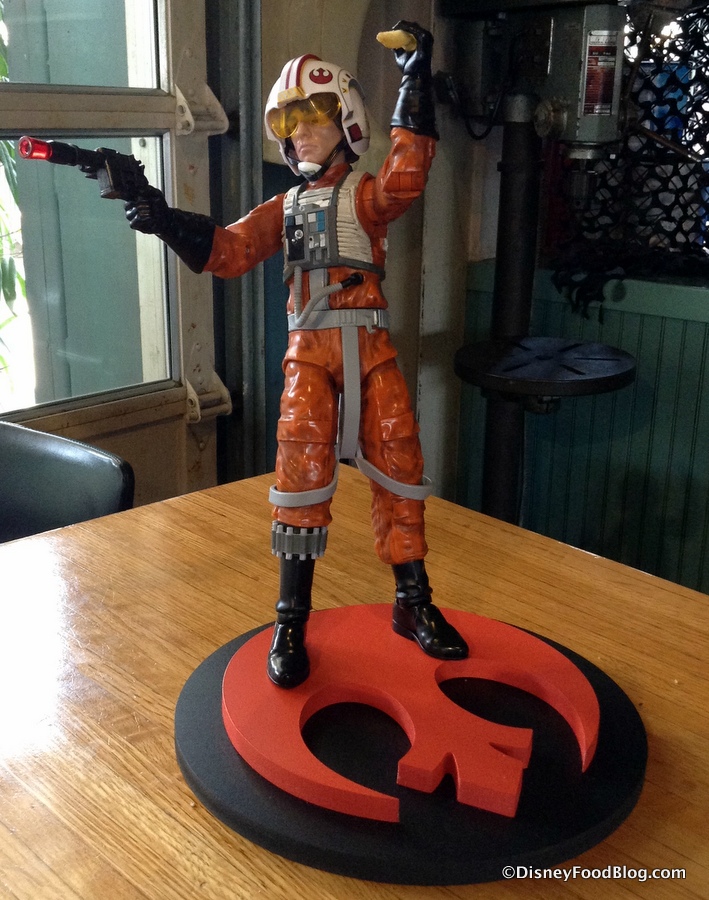 Inside, the Hangar theme takes over the main entrance of the Backlot Express through to the “Paint Department” seating area of the regular operations. Star Wars themeing ends once you arrive at the Counter Service ordering stations, which remain in service for the rest of the day even when the Hangar portion switches over to the Lounge Experience at 4 pm. (Entry for regular counter service eats is through what is typically the back of the restaurant, and seating is available in the stunt room area, not themed for Star Wars.)