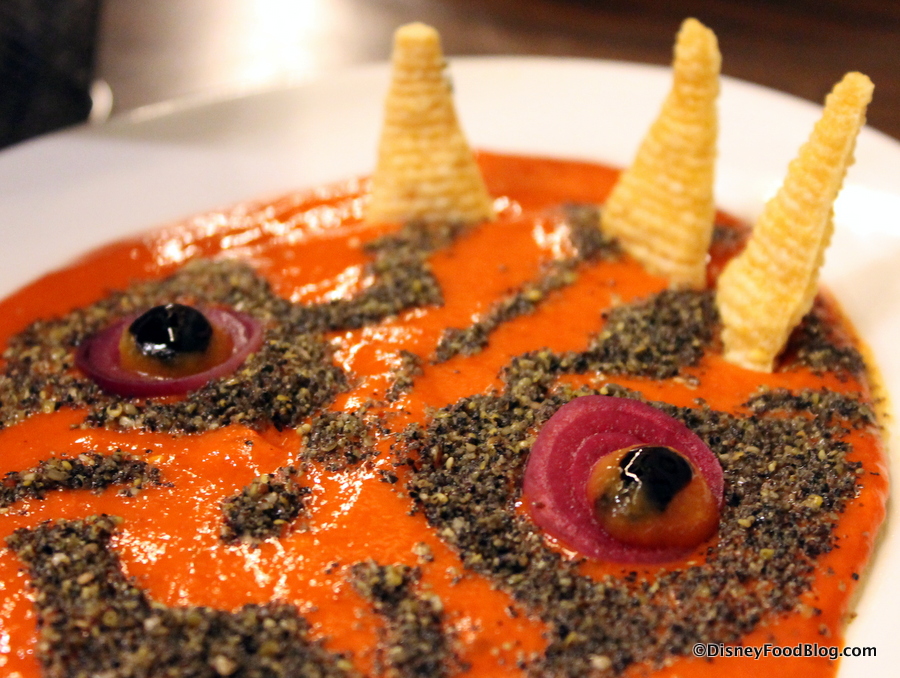 Wow. WOW. Not only does this Darth Maul-themed dish look amazing, the chickpea and lemon hummus was topped with a roasted red pepper coulis which provided not only the base of the “face,” but it also delivered just the right amount of heat, with the black sesame dust creating Darth Maul’s signature tattoos adding a bit of unexpected texture.