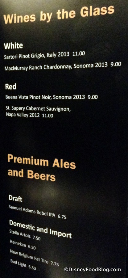Beverage options include beer and wine.