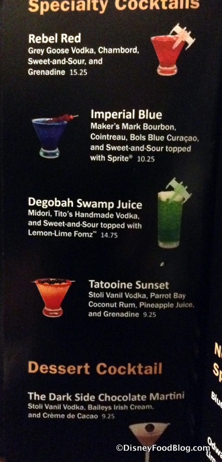 Because we already had some idea of the food and beverage choices from when Disney announced this new dining experience, I think I was most excited to see the final item on the menu, which was a happy surprise: Blue Milk!!