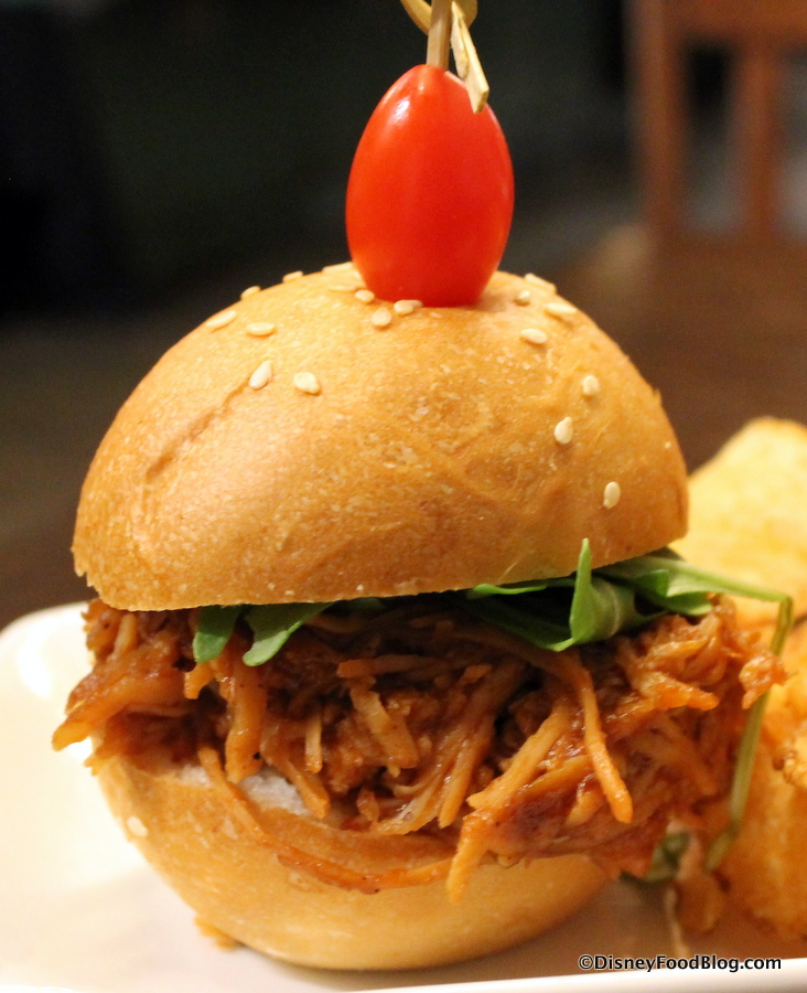 Our last plate was The Sith and The Jedi Slider Sampler. The Sith is represented by barbecue pulled brisket with coleslaw while The Jedi is barbecue pulled chicken with arugula.