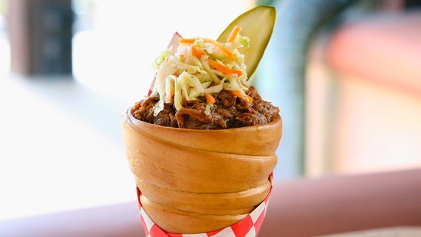 Zoom over to Cars Land for a Barbecued Pulled Pork and Slaw Cone at the Cozy Cone Motel.