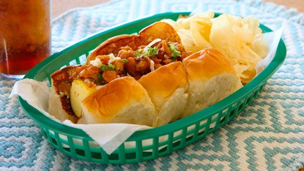 available throughout the park, like the Country-fried Chicken Sandwich with honey-mustard coleslaw on a brioche bun at Carnation Cafe.