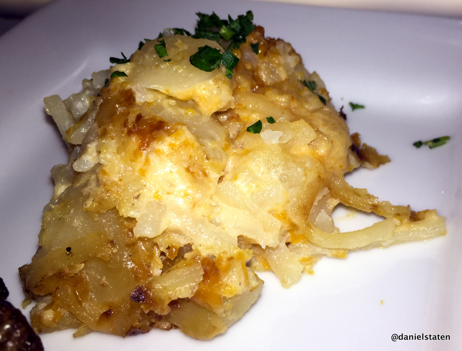 I researched the menu prior to our arrival and had narrowed down my choices to a few items. I ended up selecting The Kessel Run, which was a grilled beef tenderloin on an oven-roasted tomato, with bacon and cheddar custard, baby spinach and creamy horseradish potatoes. Does that sound too rich for breakfast? Yes. But it was delicious.