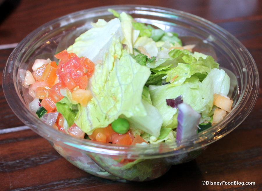 With all that, it was nice to have the Cantaloupe and Cucumber Salad along for something a bit lighter: romaine lettuce, red onions, tomato, green peas, and a zinfandel vinaigrette… oh, and cantaloupe and cucumber ;). They’re hard to spot, but they’re in there, I promise — just not in amounts massive enough to actually call this a cantaloupe and cucumber salad.