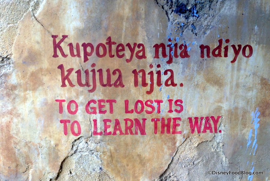 You have to look for it a bit —it’s tucked behind Tamu Tamu Refreshments, and this new section creates a continuing path from the Kilimanjaro Safaris attraction to the road leading from Africa to Asia. Once you get there, the surrounding area begins pulling you into the setting and story even before you set foot past the official entrance….