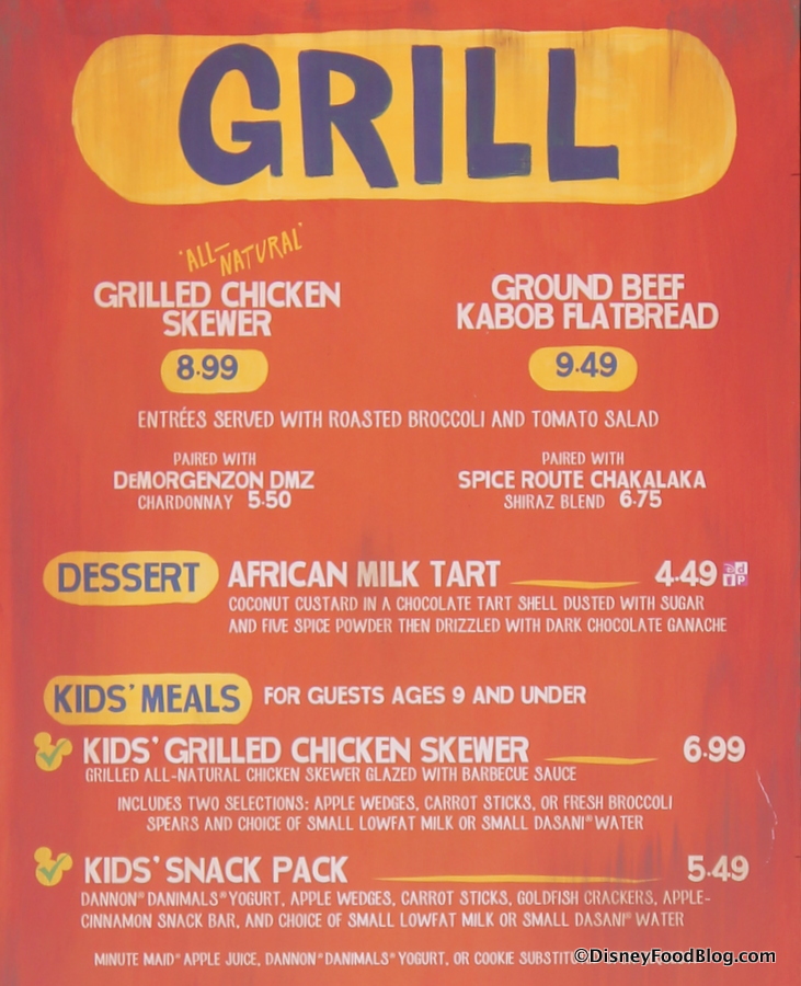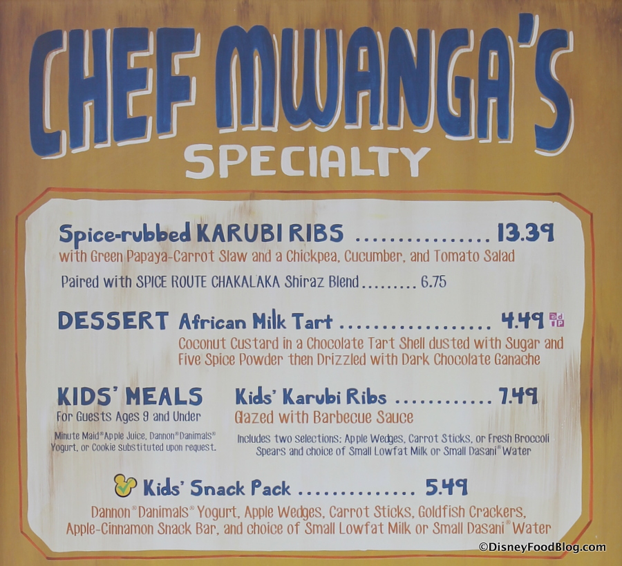 So, we were really thankful that a Cast Member shared this bit of info with us: with the exception of Wanjohi Refreshments (which serves only beverages), you can order any of the food items at any of the three food stations. Great news for families who would prefer to remain together and yet sample different items!