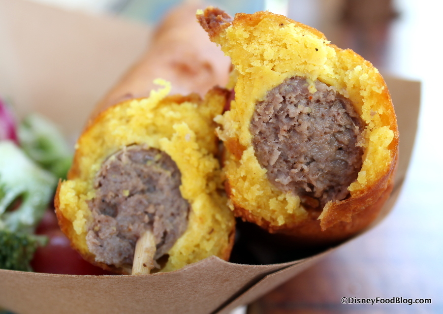 But back to the sausages… It seems like variations of the good ol’ park favorite Corn Dog have been popping up everywhere recently! From Trader Sam’s Grog Grotto and Tiki Terrace’s Corn-battered Portuguese Sausages to a more traditional take with Lightsaber Bites at the Rebel Hangar, it seems we’ve entered the new Era of the Corn Dog. But I did mention variants, and the version at Famous Sausages has two: first, instead of a more traditional hot dog, it’s a sausage link inside. Second, and possibly more unique, is the curry batter. As a side note, the portion is terrific — not quite a foot-long, but not far from it.