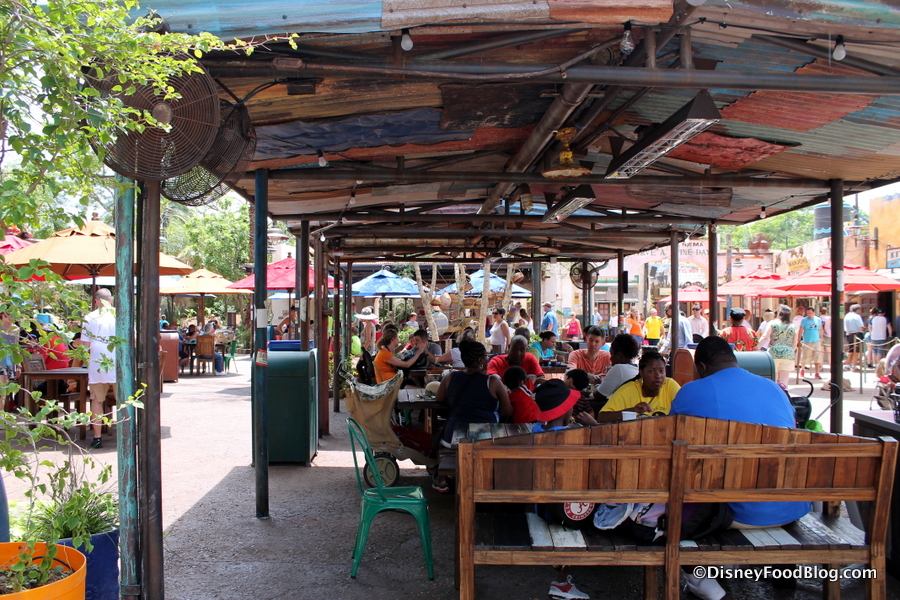 There is plenty of much-welcome seating, the vast majority of which has some sort of coverage, be it a simple overhead roof or an umbrella-topped table.