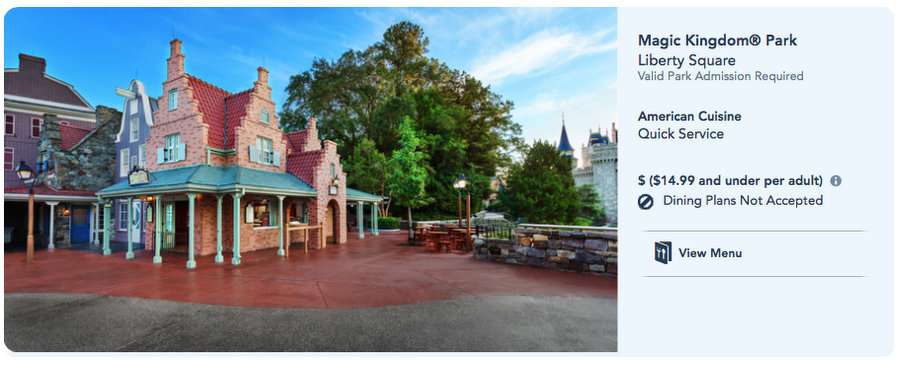 It’s important to note that “Dining Plans Not Accepted” text has popped on on several kiosk/restaurant pages on the official Disney website, as seen in these screen shots below: