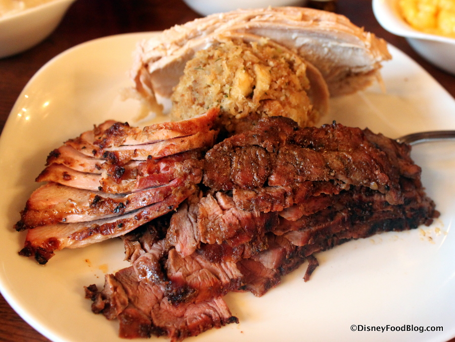 A platter of various Roasted Meats and Stuffing anchor the meal. You receive cuts of carved Turkey Breast, Roasted Pork, and Flank Steak. The Flank Steak is usually our favorite, but the turkey is quite good as well. Note that the food here can be VERY salty, so if you’re sensitive to that, be prepared.