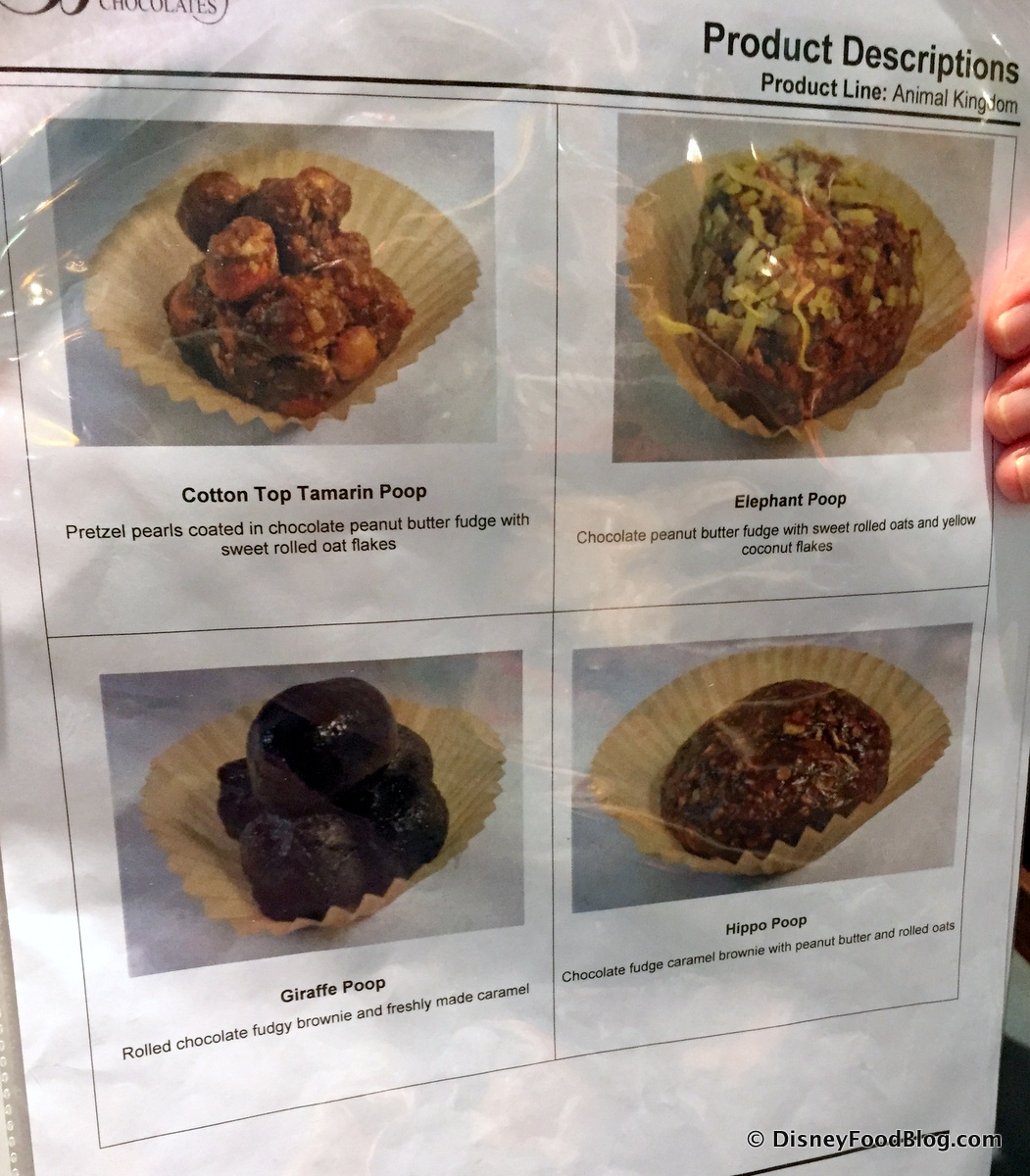 OK, so you know how when you sign on to be a Wilderness Explorer at Animal Kingdom, one of the things you have to learn about is poop? Well, the culinary team have dreamed up some freshly-made treats that look way too much like the real thing for my comfort. BUT — your kids are gonna LOVE it.